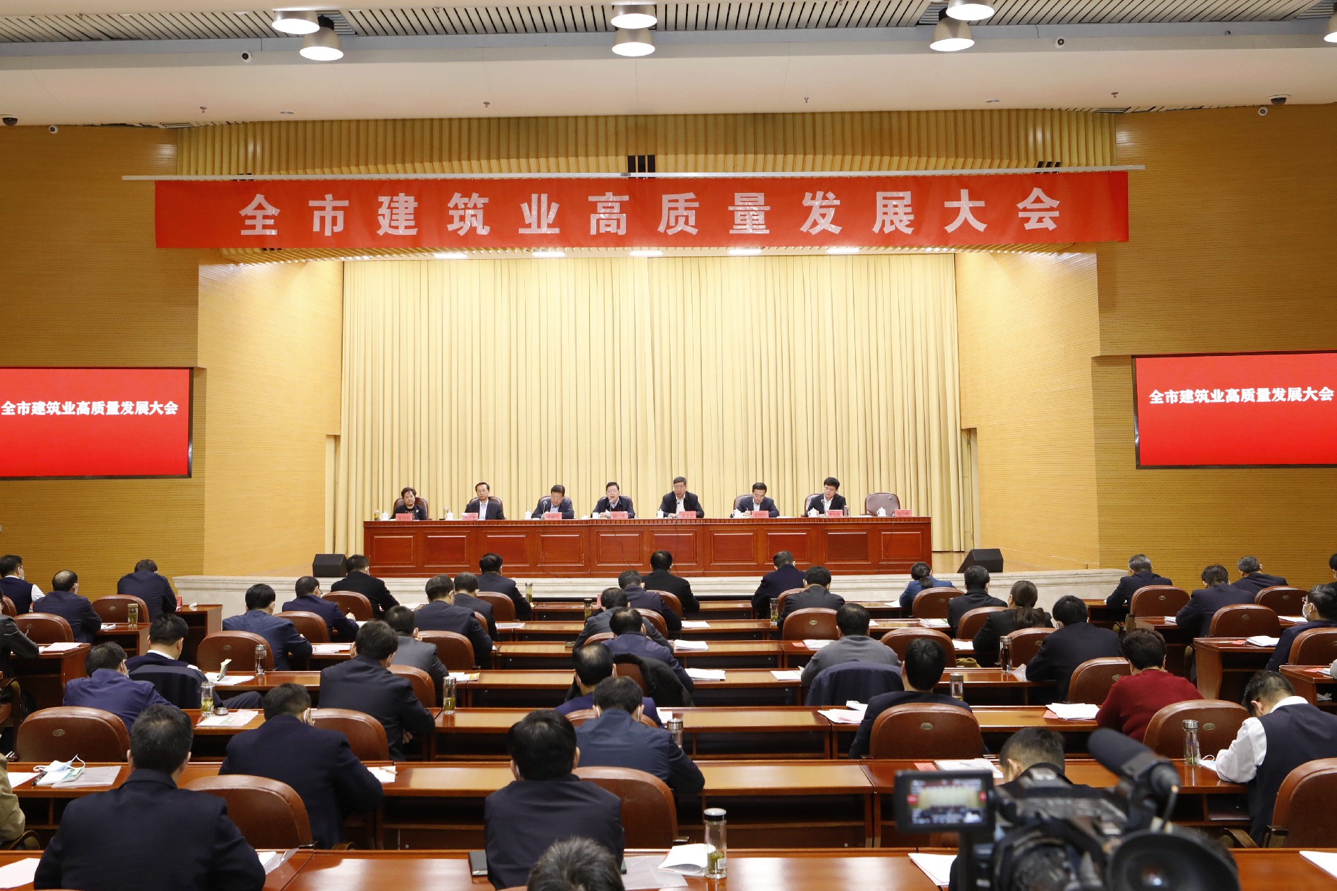 12月12日上午,棗莊市建筑業高質量發展大會在市政大廈召開。省住房和城鄉建設廳廳長王玉志,棗莊市委書記、市人大常委會主任陳平出席會議并講話,棗莊市委常委、常務副市長孫起生主持會議。市委常委、秘書長朱國偉,市人大常委會副主任劉志才,副市長李守江,市政協副主席艾百靈,棗莊學院副院長李目海,棗莊高新區黨工委書記、管委會主任王廣部出席會議。