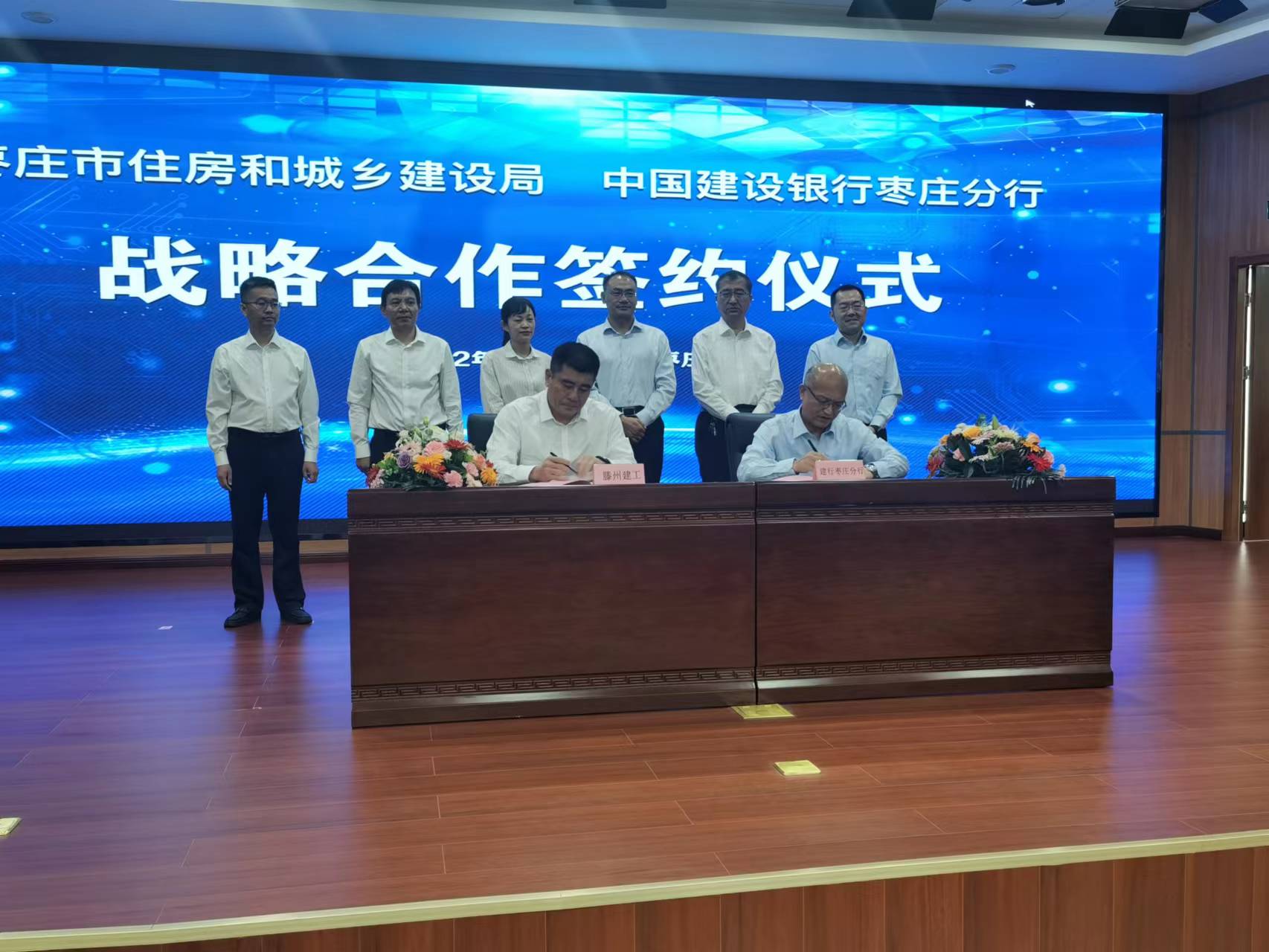6月9日上午,棗莊市住房和城鄉建設局與中國建設銀行棗莊分行舉行戰略合作協議簽約儀式,以助推建筑業企業融資渠道拓展,企業市場競爭力提高,共同推動棗莊城鄉建設事業高質量發展。棗莊市住建局黨組書記、局長陳忠奇,建行棗莊分行黨委書記、行長崔震出席簽約儀式并共同見證戰略合作協議簽署。集團黨委書記、董事長蔡成奎作為企業代表應邀參加簽約儀式。